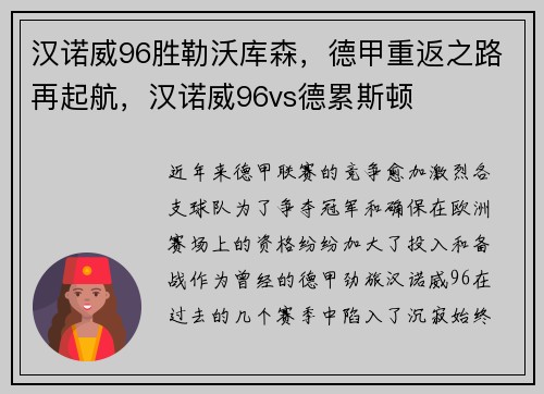 汉诺威96胜勒沃库森,德甲重返之路再起航,汉诺威96vs德累斯顿