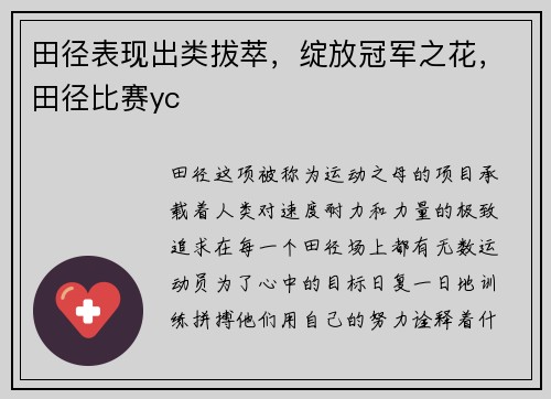 田径表现出类拔萃,绽放冠军之花,田径比赛yc
