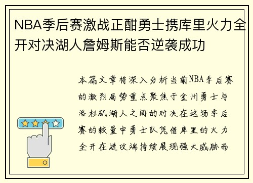 NBA季后赛激战正酣勇士携库里火力全开对决湖人詹姆斯能否逆袭成功
